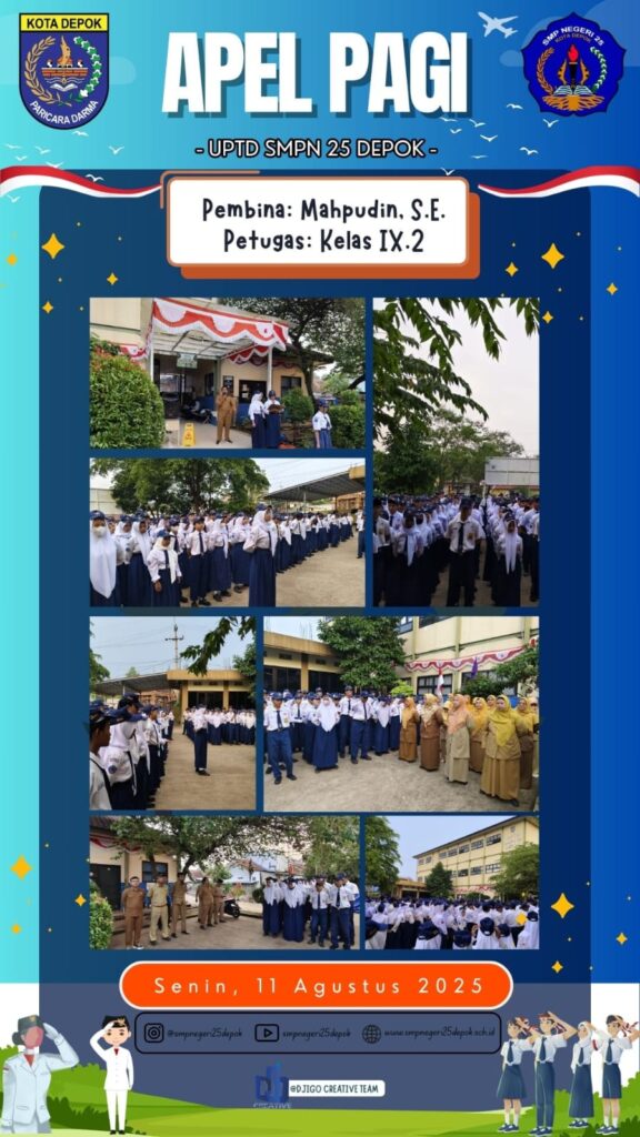 Senin, 11 Agustus 2025 — Keluarga besar UPTD SMPN 25 Depok kembali mengawali pekan dengan penuh semangat melalui kegiatan Apel Pagi. Kegiatan rutin ini bukan sekadar seremoni, melainkan momentum penting untuk menanamkan nilai-kali karakter, kedisiplinan, dan rasa nasionalisme kepada seluruh Read More …