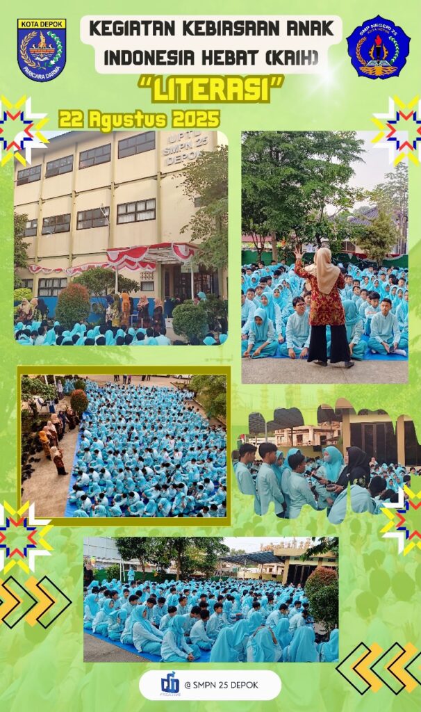 SMPN 25 Depok terus berkomitmen menciptakan lingkungan sekolah yang inspiratif dan edukatif. Salah satunya melalui program unggulan Kegiatan Kebiasaan Anak Indonesia Hebat (KAIH) dengan fokus utama pada Gerakan Literasi. Foto-foto di atas mengabadikan keseruan siswa, di mana seluruh siswa berkumpul Read More …